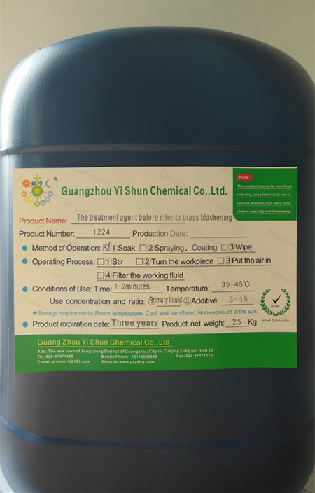Product Name:Inferior brass blackening pretreatment agent, Inferior brass blackinng pretreatment additon agent , Inferior brass preoxidizing agent ,Treatment liquid before inferior brass blackening,Catalytic agent before blackening