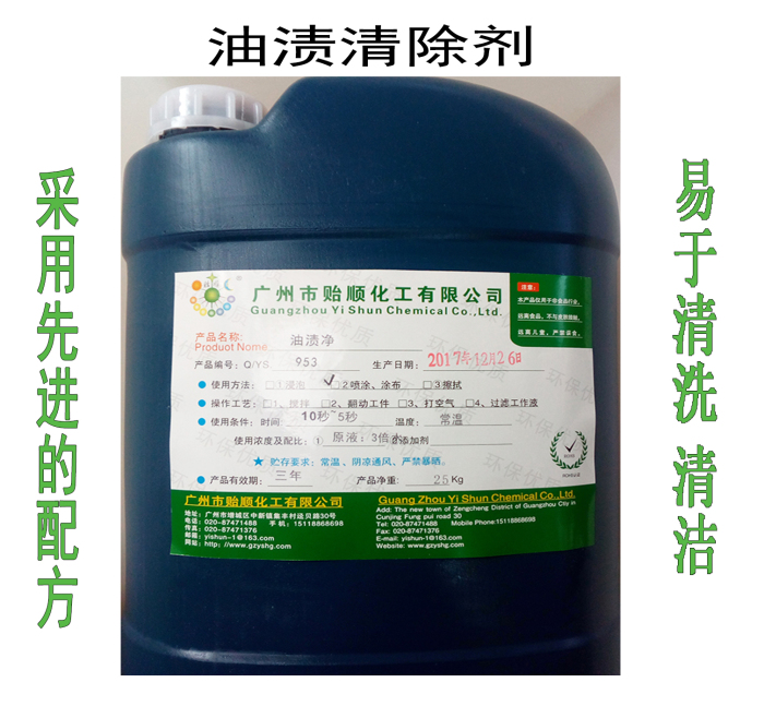 油漬凈 (一) 產(chǎn)品編號:Q/YS.953 強力油漬清除劑 油煙機上頑固油漬清除 油漬清洗劑